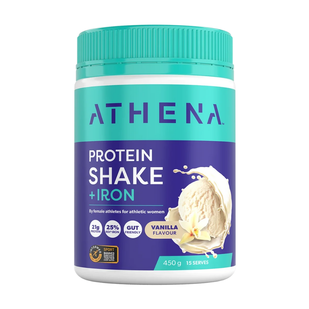 Athena Protein Shake + Iron - Vanilla Flavour is a deliciously smooth low carb protein blend. With added Iron, Vitamin C and Digestive Enzymes to support your sports nutrition needs so you can always be at the top of your game.