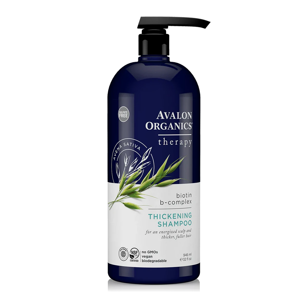 Avalon Organics Biotin B-Complex Thickening Shampoo is a carefully balanced blend of biotin, saw palmetto, quinoa protein and vitamin E work in harmony to: