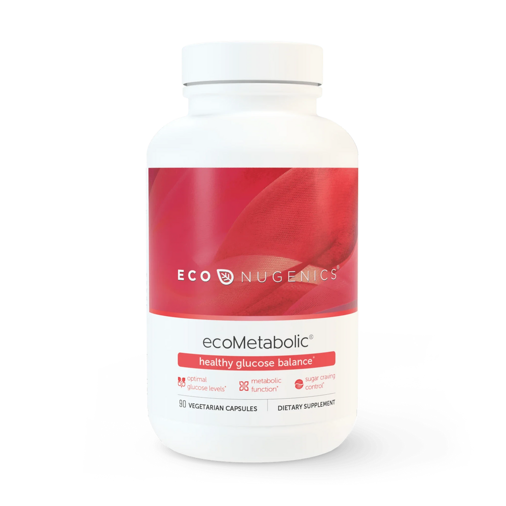 ecoNugenics ecoMetabolic promotes healthy glucose and cholesterol levels, reduces sugar cravings and supports optimal metabolic function. Concentrated botanical extracts and targeted nutrients in ecoMetabolic provide comprehensive benefits for long-term metabolic health and efficiency.