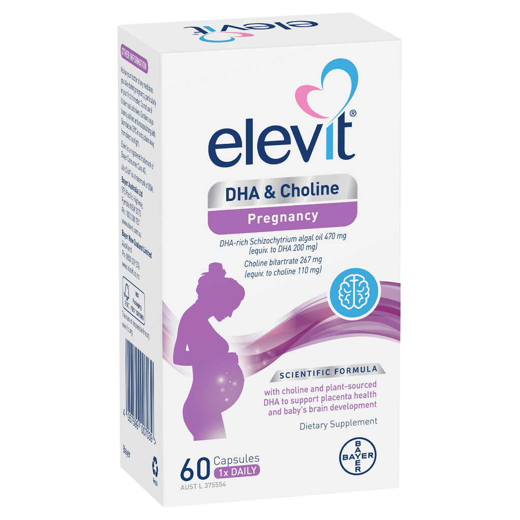 Elevit DHA & Choline Pregnancy supports the first 1000 days of life (from conception to a child's second birthday). This is a significant and unique window of opportunity for laying the foundations for future health. DHA and choline both play an important role during this time as essential nutrients to support the healthy development of your baby’s brain and nervous system. Choline is also linked with supporting placenta health during pregnancy.