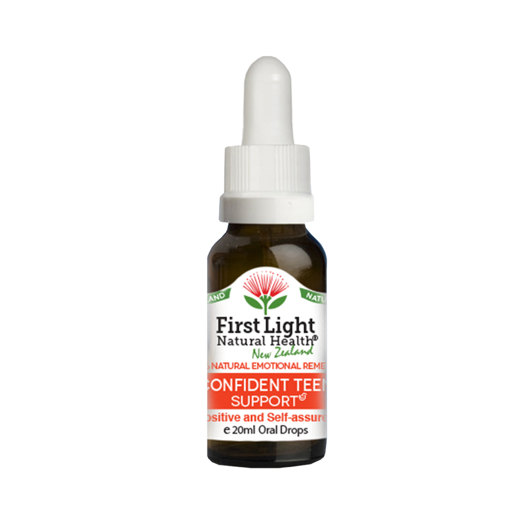 First Light Natural Health® Confident Teens Support© Drops is an emotionally supportive flower essence blend to support shy, unconfident or withdrawn teenagers. Supports the natural development of a positive, fearless attitude to life and the ability to move out of the comfort zone and meet the world confidently. Helps teens who want to come out of their shell, make new friends, confront difficulties or meet life’s challenges.