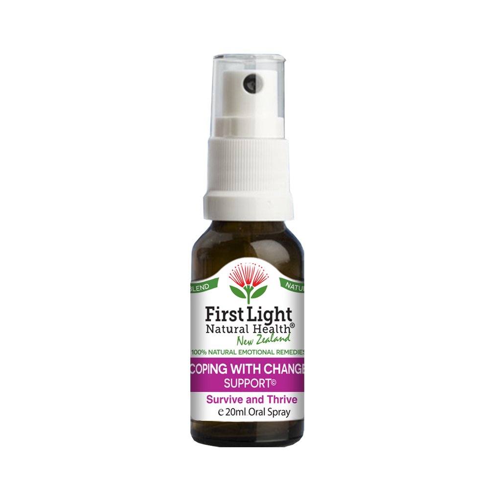 First Light Natural Health® Coping With Change Support© Spray, this emotionally uplifting flower essence blend supports you to successfully navigate challenging times, keep your spirits up and feel ready for the next adventure. Helps you to meet life’s changes with optimism, enthusiasm and confidence. Supports flexibility and adaptability when facing new or unknown life situations. Helps you to embrace opportunities and be more in touch with the magic of life.