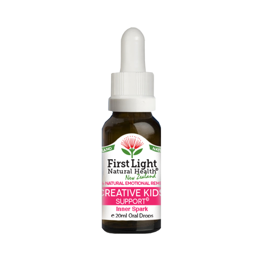 First Light Natural Health® Creative Kids Support© Drops is an emotionally self-expressive flower essence blend to support natural creative impulses, imagination and inspiration in children. Supports a healthy sense of self and the ability to creatively express own uniqueness. Helps highly creative children, those who experience blocked creativity or shyness or who are bored and appear disinterested.