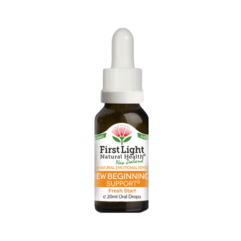 First Light Natural Health® New Beginnings Support© Drops is an emotionally uplifting flower essence blend to support a fresh start and a new beginning. Supports you to feel uplifted and look forward to a new vision and new possibilities. Use when starting a new job, project, family, relationship or business or when building a house, starting anew after a loss, relocating or going through a major change. Use when undertaking or experiencing personal transformation or striking out on a new life adventure.