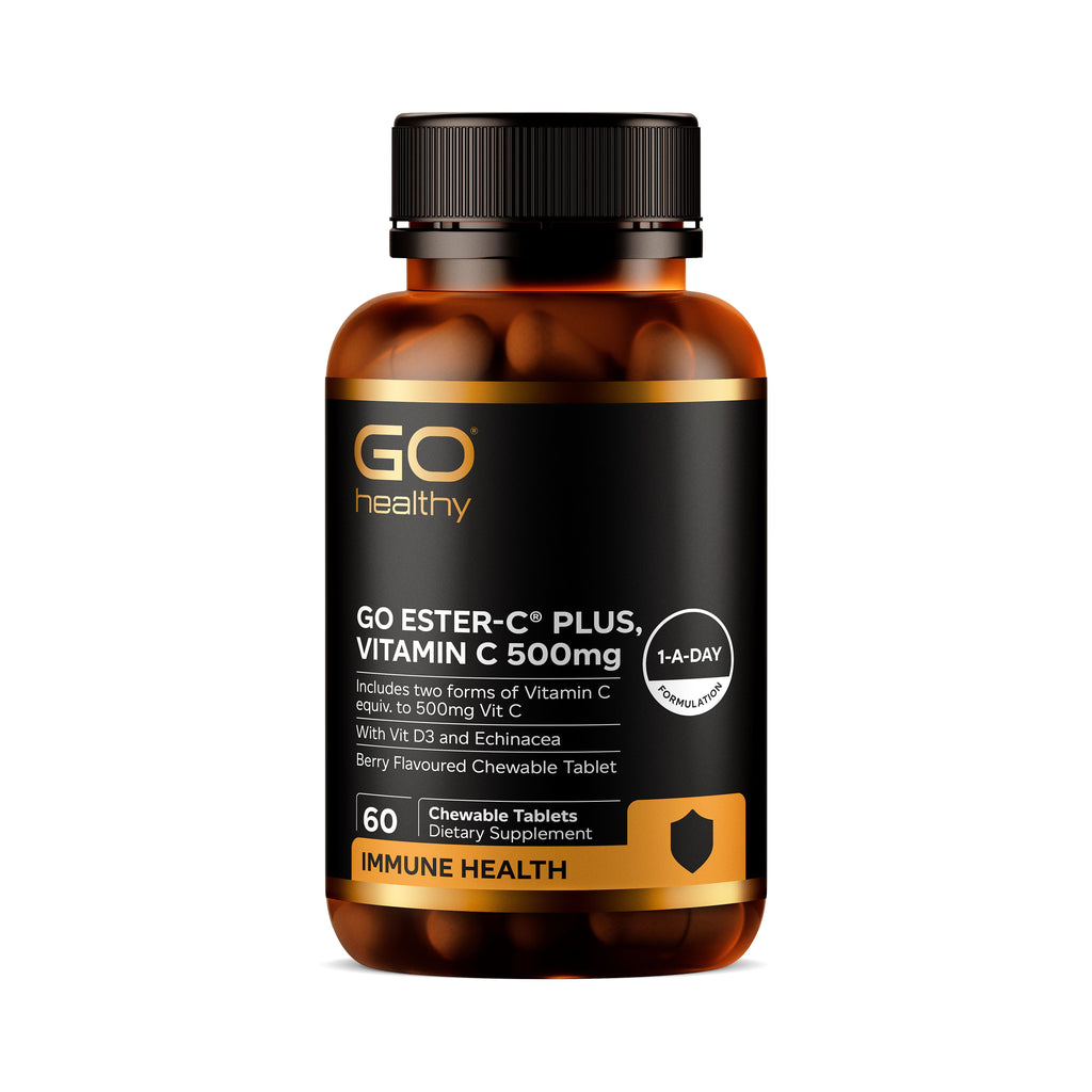 GO Healthy Go Ester-C® Plus, Vitamin C 500mg is a Berry flavoured chewable formula that contains two forms of Vitamin C, including an innovative form of Vitamin C called Ester-C®. Ester-C® is better retained in the body than standard Vitamin C.