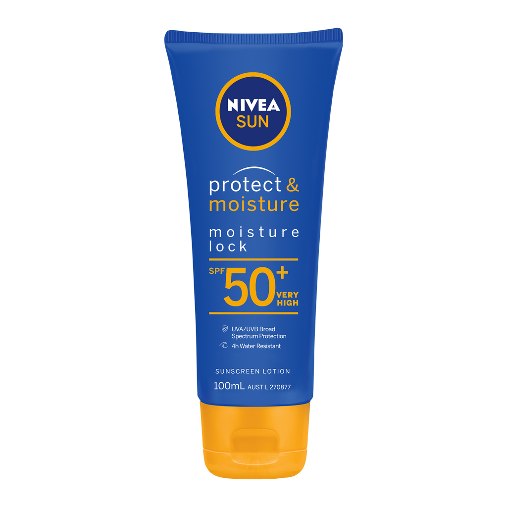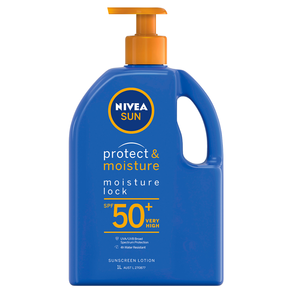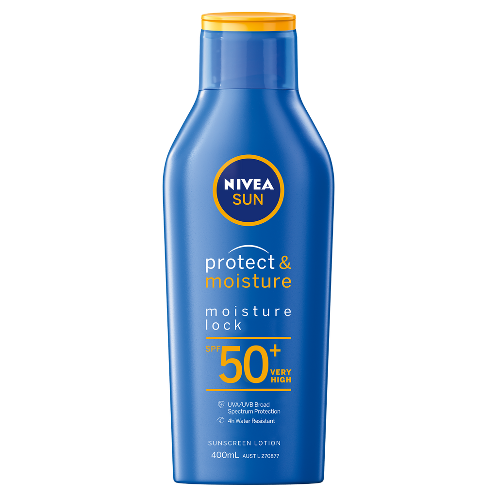 Nivea Sun Protect & Moisture Moisture Lock Sunscreen Lotion SPF 50+ provides you with very high broad spectrum protection and moisturising care. Enjoy the sun with quality care using NIVEA!