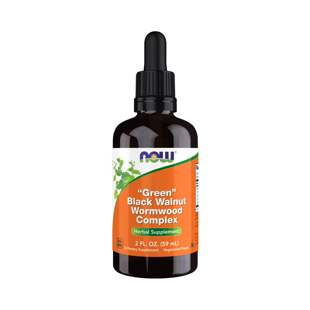 NOW® Foods "Green" Black Walnut Wormwood Complex is an herbal formulation that combines three traditional herbal extracts in one convenient liquid supplement. This product is manufactured with extracts of unripe (green) black walnut hulls (Juglans nigra), wormwood (Artemisia absinthium) and clove buds (Syzgium aromaticum).