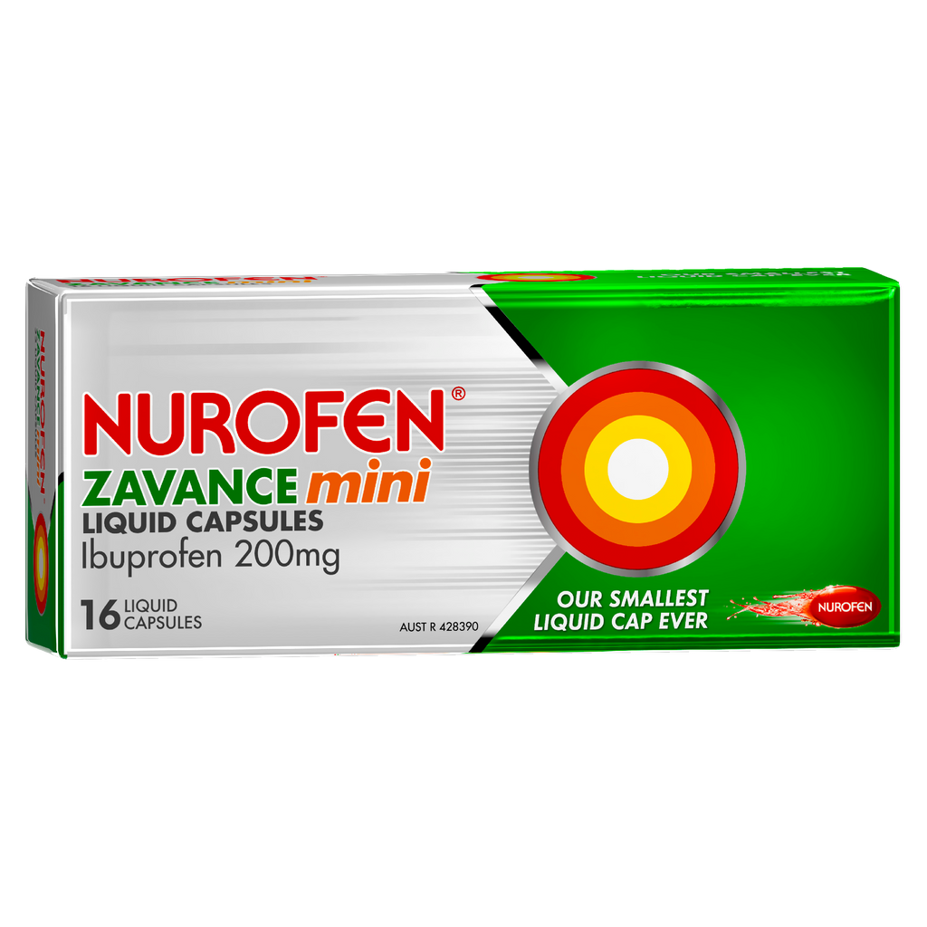 Unleash the speed of liquid with Nurofen Zavance mini Liquid Capsules, Nurofen's smallest liquid cap ever. The pain relief you love, now 20% smaller.