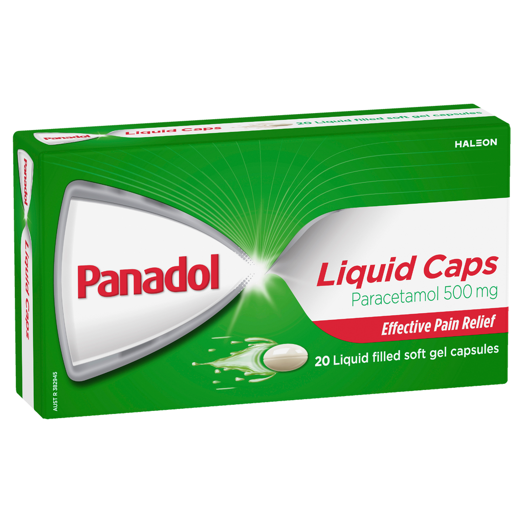 The same trusted pain relief but in a new liquid cap format with a soft gelatin casing for easy swallowing. Panadol Liquid Caps provide effective temporary relief from headaches, body aches, toothaches, period pain and cold and flu symptoms. Like other Panadol tablets and caplets, it is also gentle on the stomach.